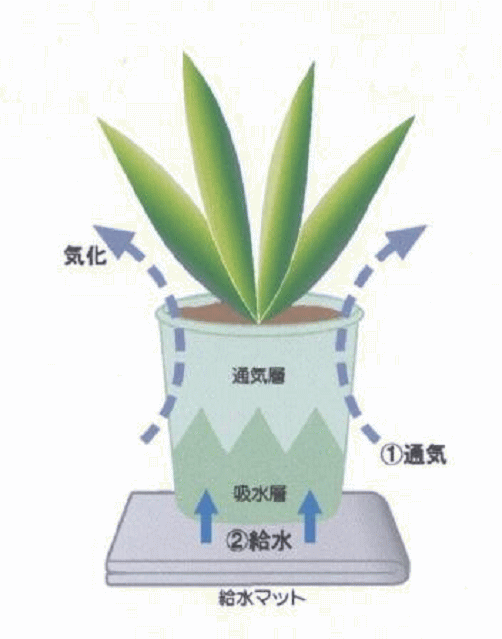 ミニグリーンをつくる時に使用したのが、上の写真の『マザーポット』という入れ物で、これはかなりの優れものです。今までの寄せ植えは、同じ土壌に幾つかの植物を植えていましたよね?これを使うとポットに入れたまま、植えるというよりは並べるという感じで、上から見えないように隠す土のようなものがあり、見た目は普通の花壇です。1つずつ分かれているので、植え替えなども楽々です。下に給水用の布(マット)を敷くのですが、これに水を十分にしみ込ませておけば、水遣りは毎日しなくてもいいので、かなりの手間が省けます。