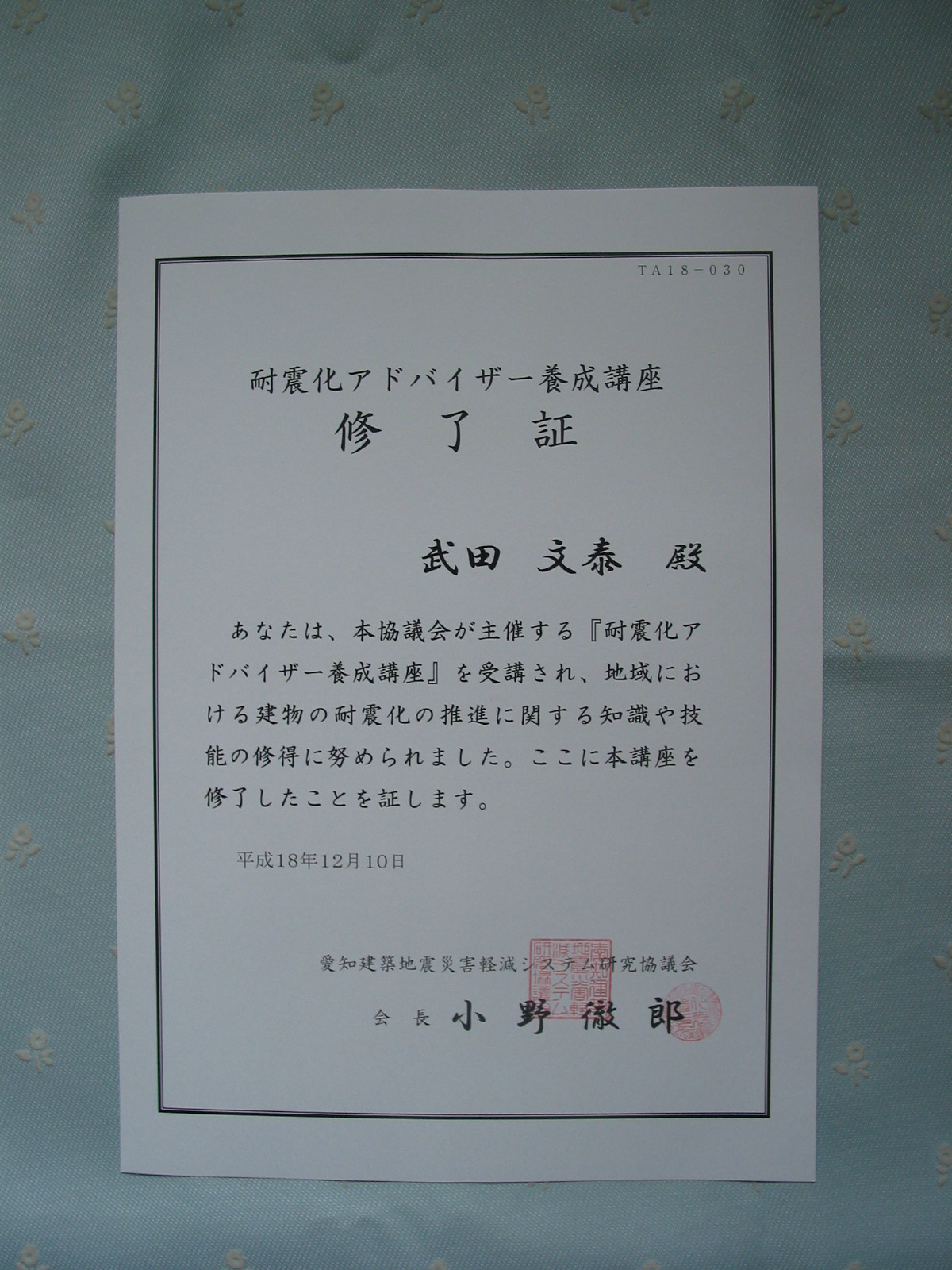 養成講座修了後には、木造住宅耐震診断員や応急危険度判定士の知識も生かしながら 皆様やご家族様の命、大切な財産をなどを守る為に少しでも手助けが出来れば