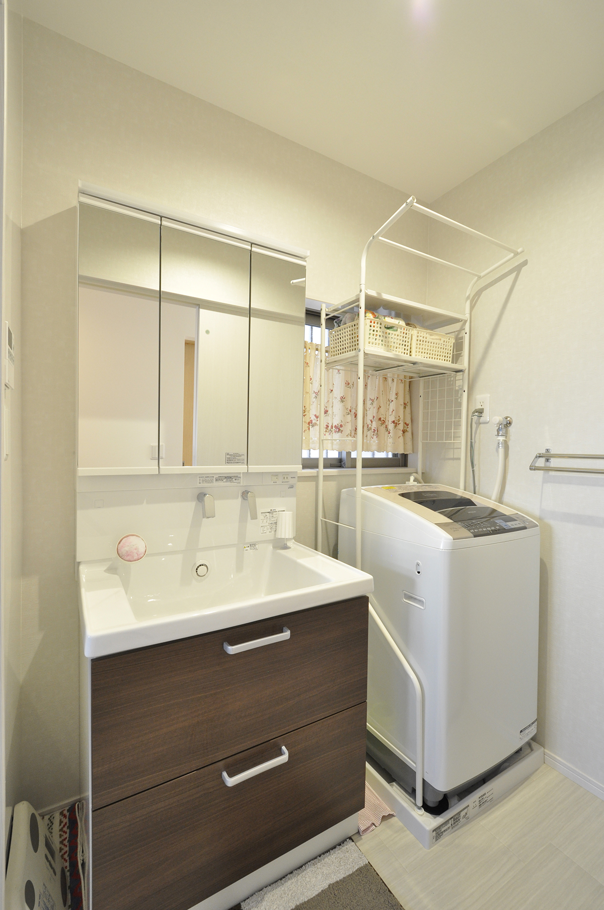 スペースの広さはそのままで、洗面と洗濯機のレイアウトを変更。