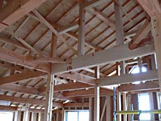 先日知り合いの大工さんが建設中の自宅兼事務所に行く機会がありました。その家もプレカットで建てられたもので、構造がよくわかる工事の段階での現場の様子です。