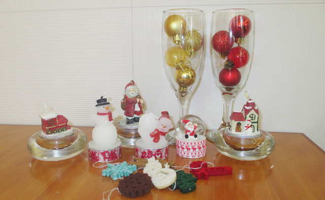 オーナメントボールをグラスに入れてみたり・・・。