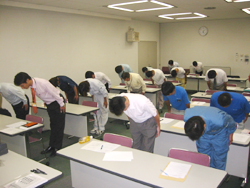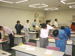 また、実際にお客様と接した時にどのように挨拶をするのか、言葉遣いや姿勢、礼の仕方の練習と、グループごとにディスカッションをして、良い現場を作る為にどうしたらよいかを考たりなどで、丸一日かかってしまいましたが、とても有意義な時間を過すことができました。