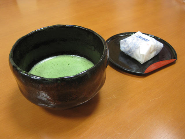 お抹茶と和菓子で、ささやかですがおもてなしさせて頂きました。