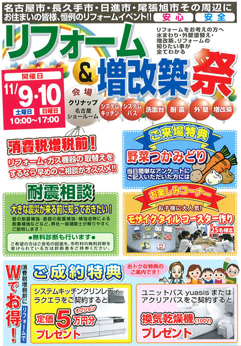 「リフォーム&増改築祭」への多数のご来場誠にありがとうございました。