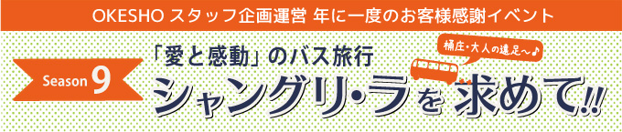 OKESHOスタッフが企画・運営する、笑いあり!涙あり!そしておいしい食事に心満たされ過ごす1日限定の大人の遠足。店舗・年齢の垣根を超えて編成されたプロジェクトチームを中心に全社一丸となり、楽しみながらプランを練っています。皆様が1秒でも多く笑顔になれる日となりますように。。。