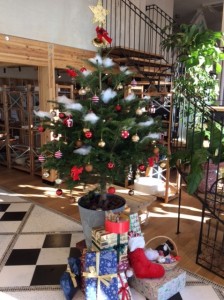 先日新入社員の女の子が中心になってクリスマスツリーをお店に飾りました。