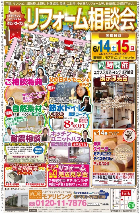 モアリビング アイ・スタイルにて6月14日(土)15日(日)にリフォーム相談会を開催します。