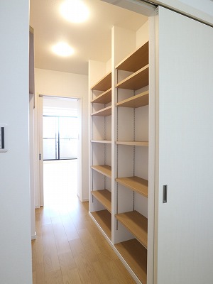 ここ以外にもリビング、廊下、洗面、もう一つの洋室にも収納を計画しましたので、使いたい場所で収納したいものが収まりきるのではないかと思います。