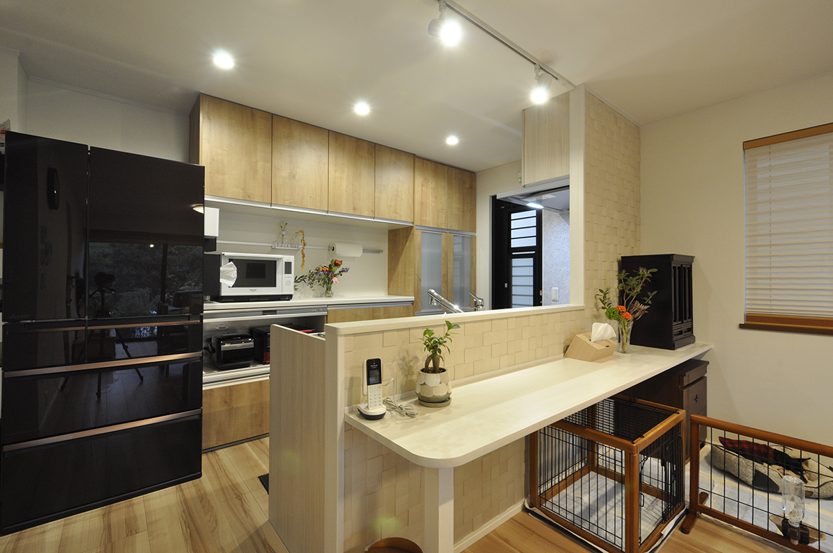ダイニングとキッチンを仕切っていた、壁を取り払い繋げた事でデットスペースになっていた場所もなくなり、より広々して明るくなりました。