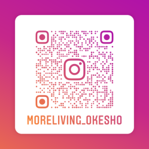 また、今後の情報発信はインスタグラムにて行ってまいります。             下記QRコードを読み取っていただくか、インスタグラムにて『moreliving_okesho』と検索して、フォロー&いいねをよろしくお願いいたします。
