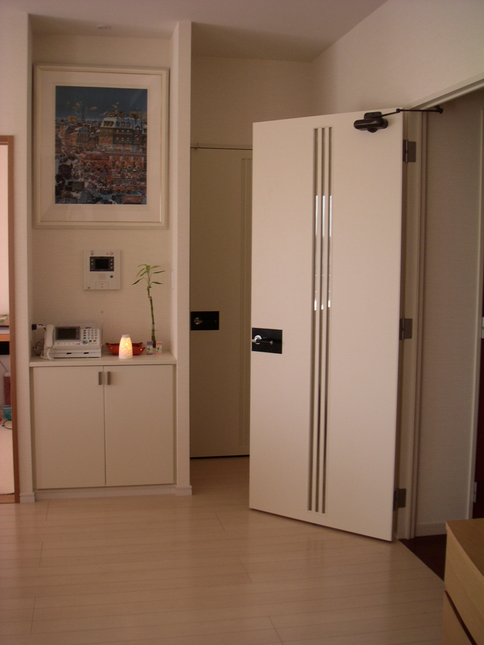 フローリングがナチュラル色になったのに、もしドアや電話台が赤のままだったら? この “プラスちょこっと” がお部屋がステキになるかどうかの分かれ道かもしれないと 思いました。