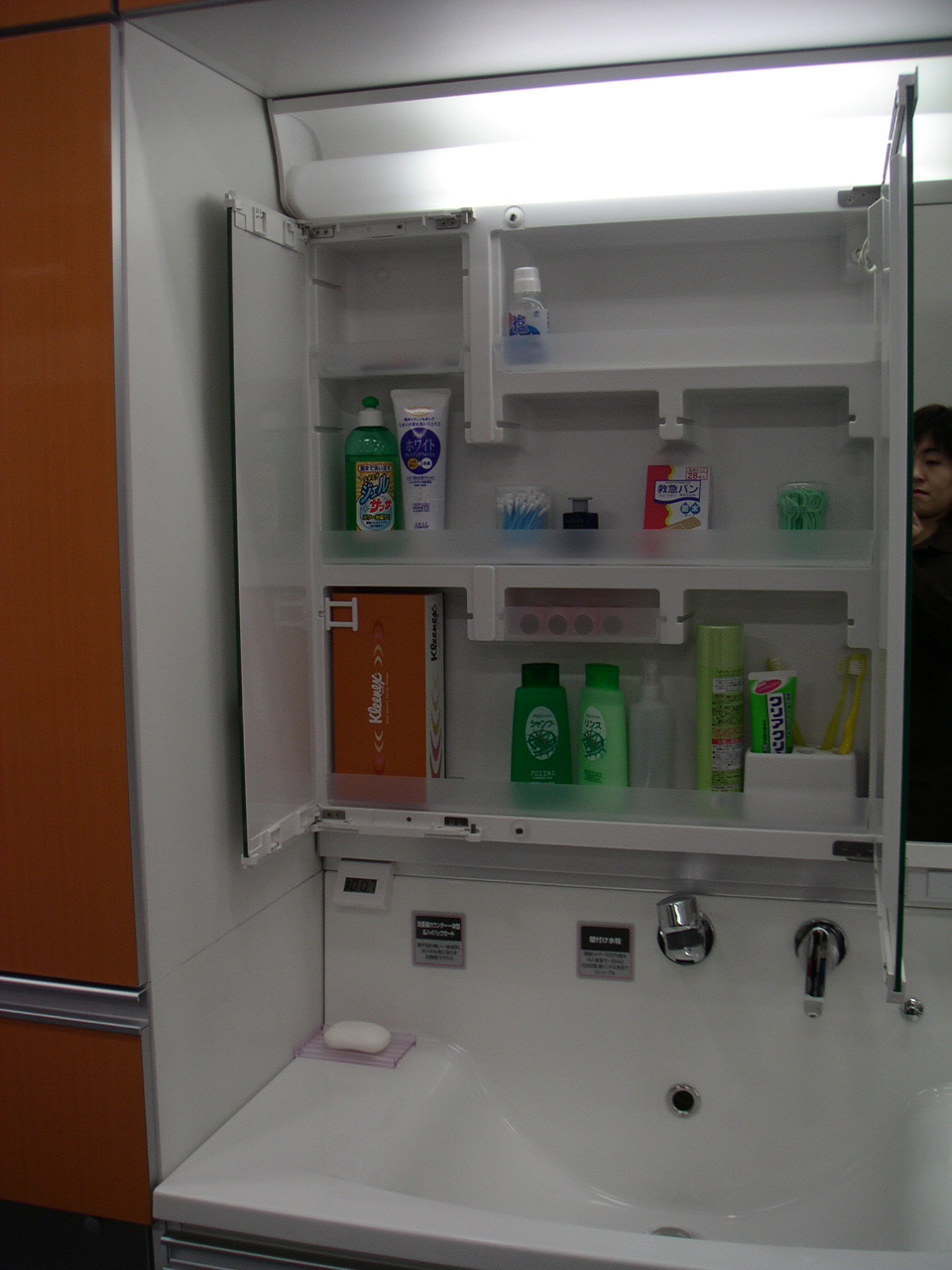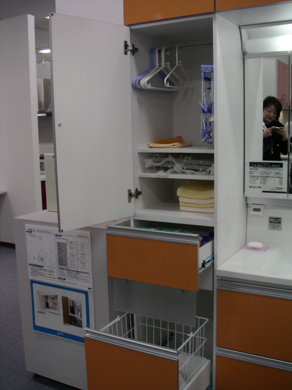 ユニットバス、便器、キッチン、等色々ある中、特に目新しい洗面脱衣室の収納を見つけました。