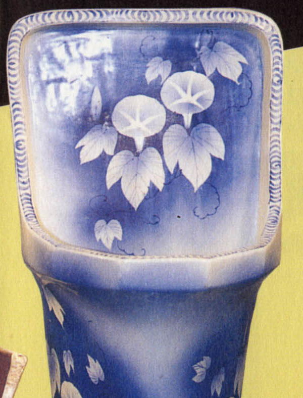 染付古便器の展示室もあり、昔の高級な便器も見てきました。現在と比べると、カラフルな絵付けが施されたものばかりでした。