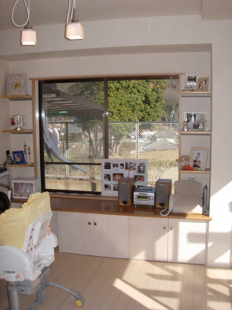 工事させて頂いたのは内装と上の棚の取付だけで、家具はお客様がいろいろ探して買われました。