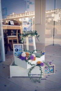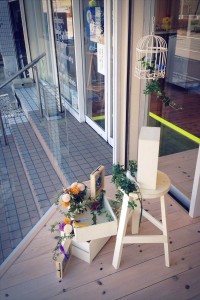 以前、クリスマスのディスプレイで使用した箱やスツールも春の仕様に様変わりしました。