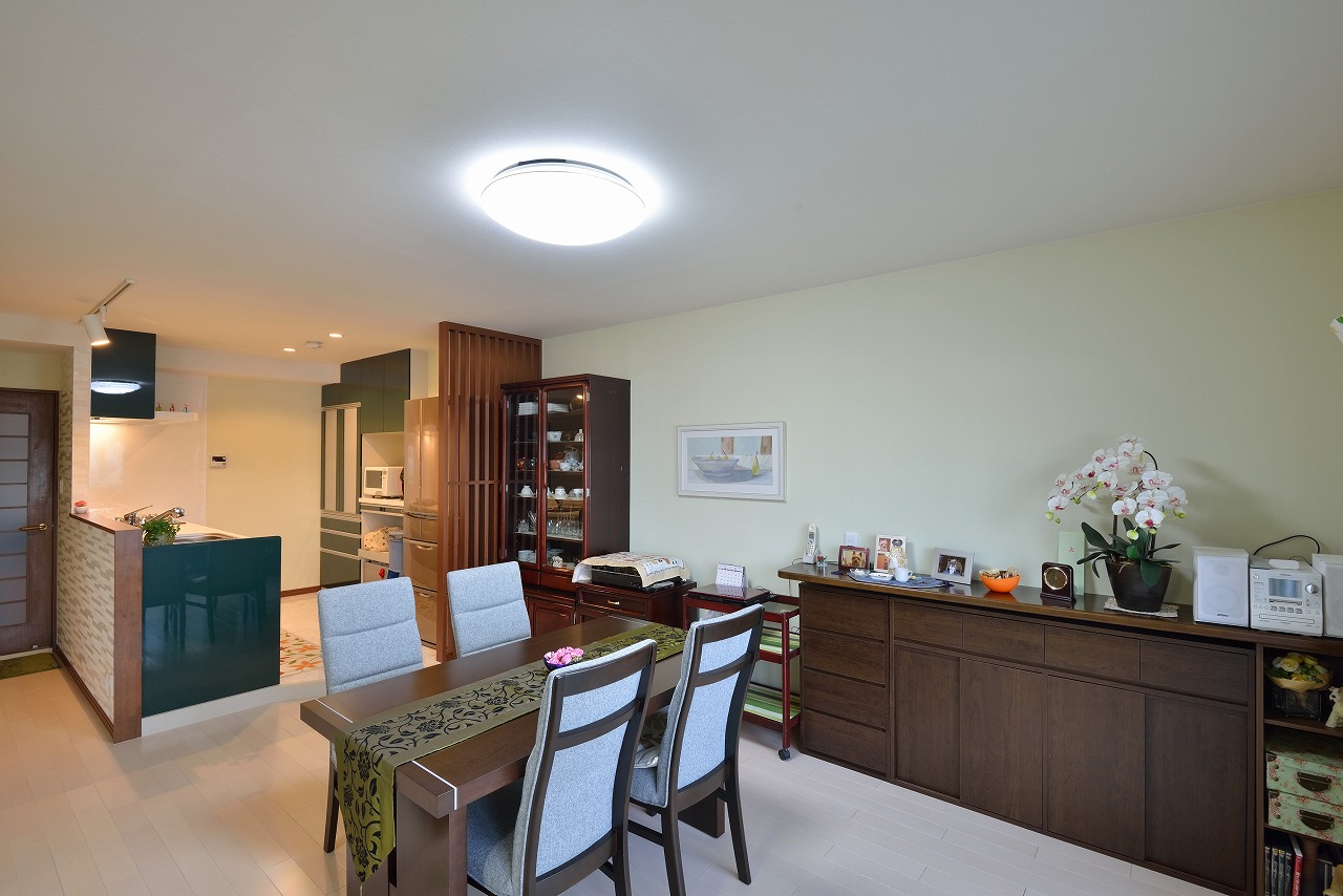 独立していたキッチンをオープンタイプにし、和室だった部分を取り込んで一体型のリビングダイニングにしたりと、全面のリフォーム。