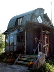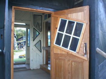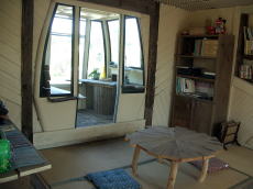例えば、スキー場のゴンドラを使った出窓とか、天井には搬送用の卵パックが恐らく断熱材代わりに使われていたりとか、「なんで三角の窓なんだろ?」と思ったら廃車の窓を使っていたりとか、、、、