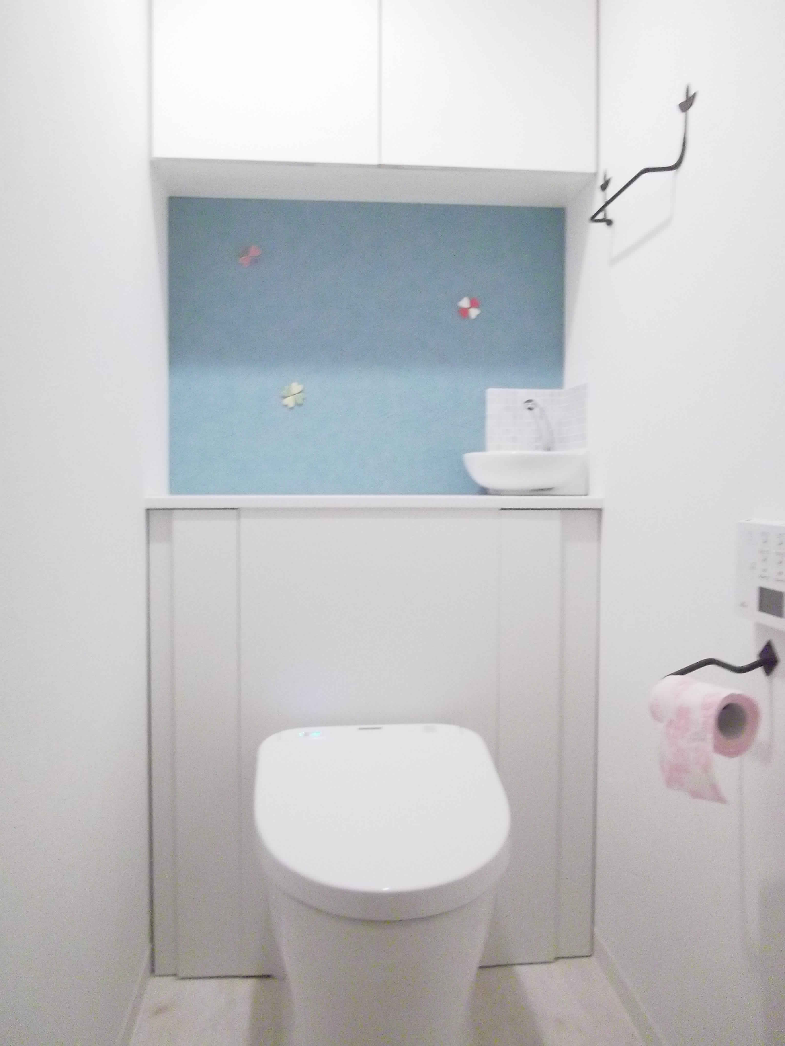 ホワイト×ブルーがとても素敵なフレンチスタイルのトイレになりました。