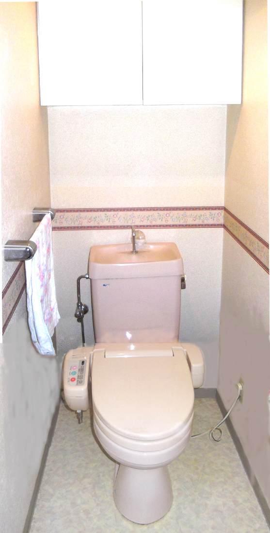 経年劣化による便器の水漏れから、手洗付の便器の取替えをお考えになられたというI様のご要望は、奥様の大好きなプロヴァンス風トイレへのリニューアル。手洗器も付けられたいとのことでした。