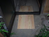 大工さんに聞いたところ、この家の主であるお婆ちゃまがいつも持ち歩いているカートを動かしやすいように・・・と、残った材料で作ってくれたそうです。