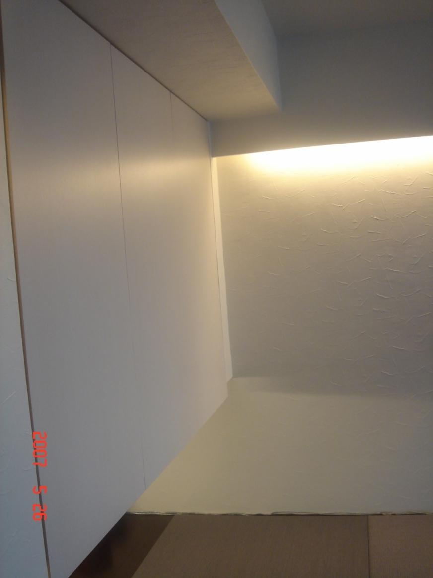 減ってしまったので、壁一面にクローゼットを設け、生活観のあるモノ達はすべてその中へ。