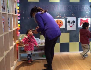 お子様にはお正月らしい遊びとして、ベーゴマや福笑いを楽しんで頂きました。