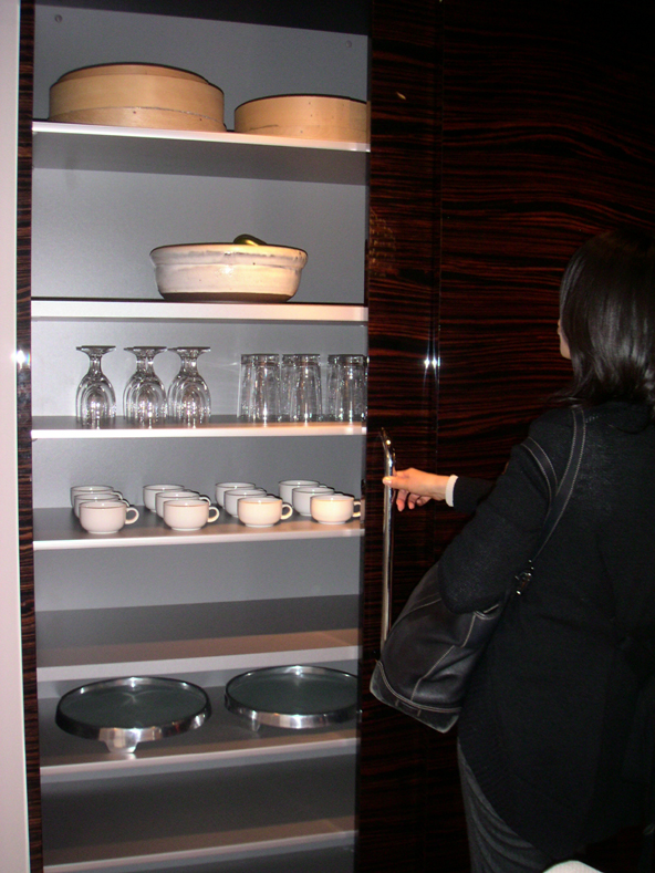 キッチンの奥に並べてあるものはアイランドコアというもので、キッチンと同じ高さのため、作業台にもテーブルにもどちらにも使えるものです。キッチンとの一体感がますます迫力を感じさせます。