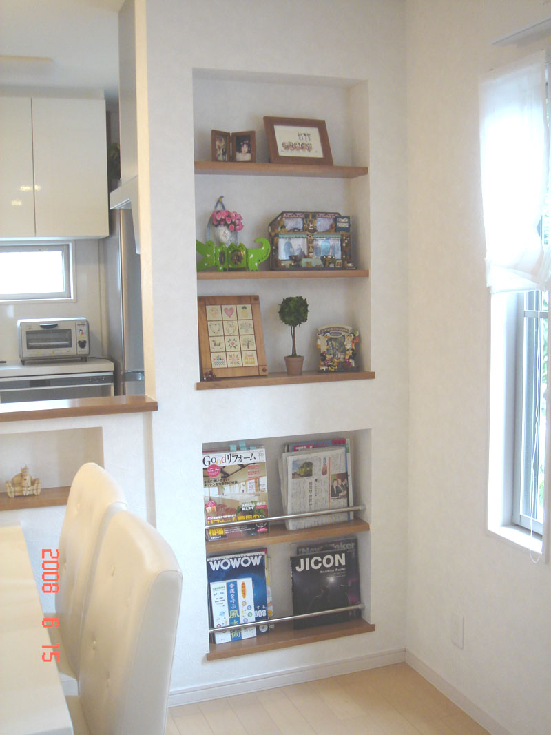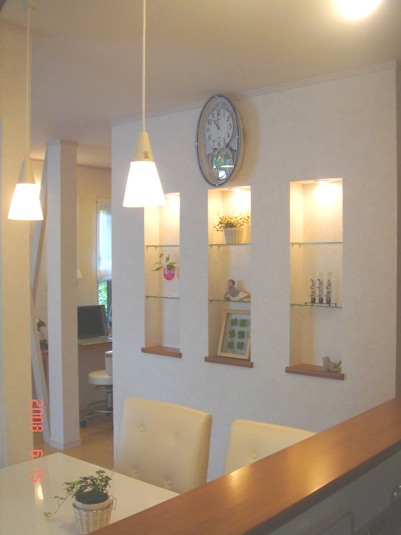 LDKの至るところに、飾るのがお好きな奥様のご要望で設けたニッチがあり、グリーンや小物、ご家族の写真が素敵に飾られておりました