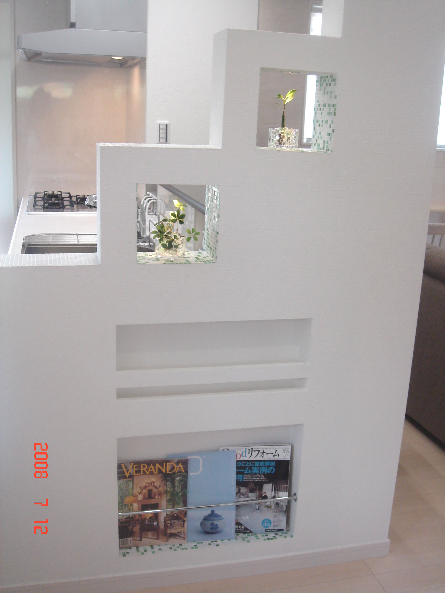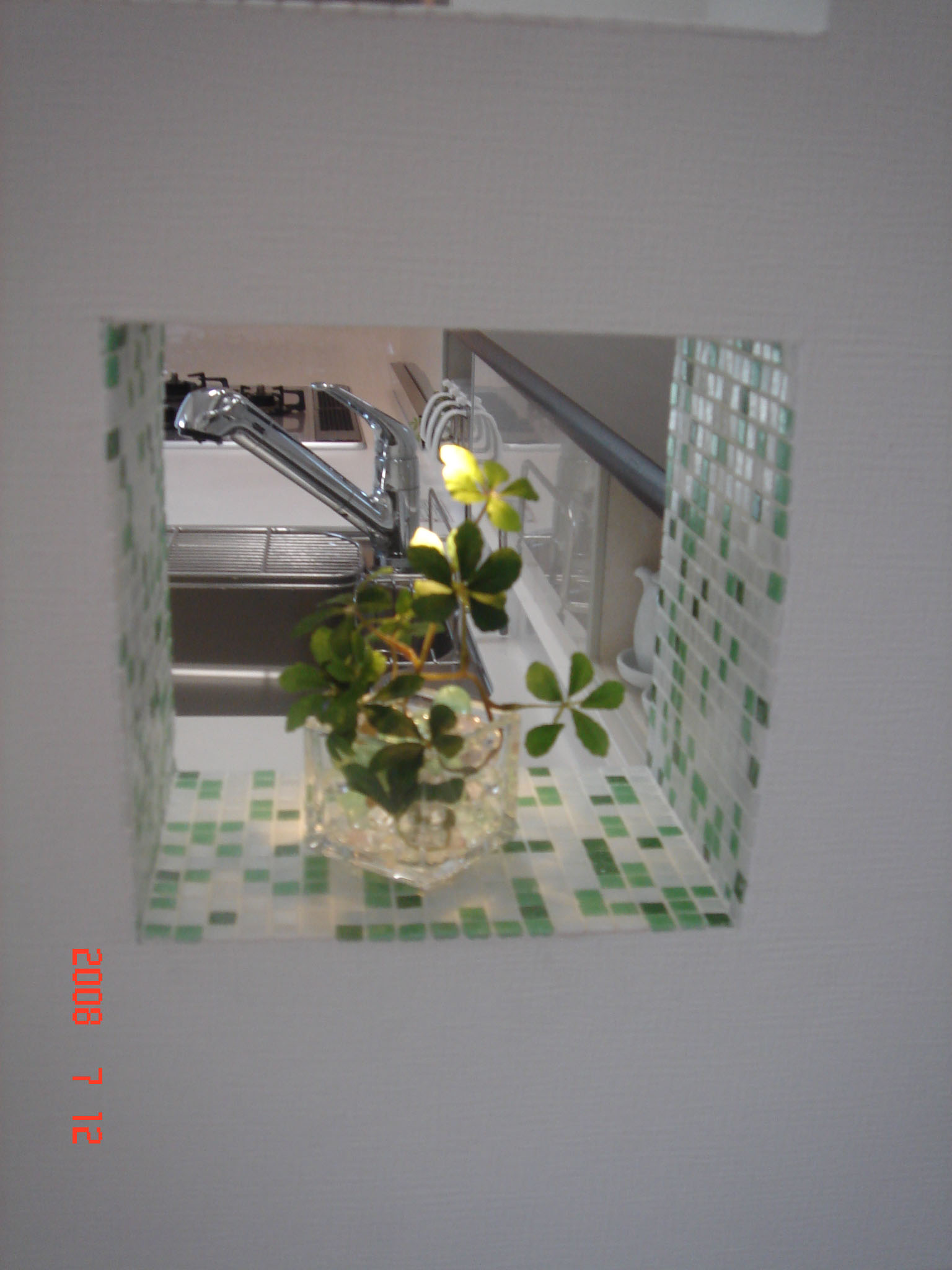 でも、内部にタイルを貼った開口部には奥様がグリーンを飾られたり、下部にはマガジンラックも設置したりと、結果、O様ご夫妻のお気に入りのコーナーとなりました。