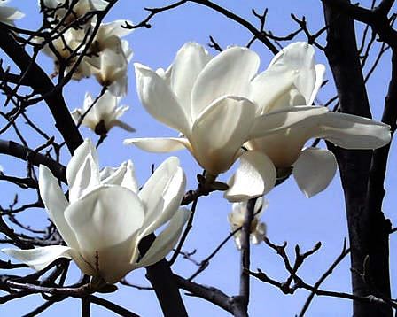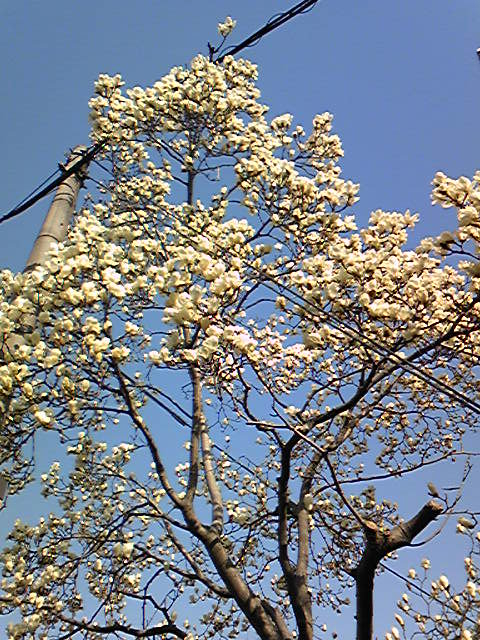 白いものがハクモクレン、紫色のものがモクレン、別のお花なんだそうです。