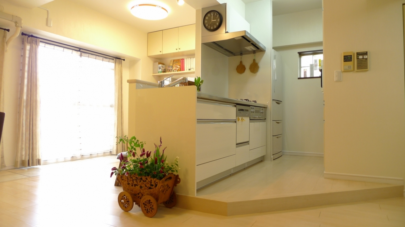 I様邸はLDK全体を。長年温めてこられたリフォームへの想いを実現されました。楽しいキャラクターのI様。お友達も多く、自宅で木工彫刻の先生をされています。I様の性格同様、明るい空間になりました。