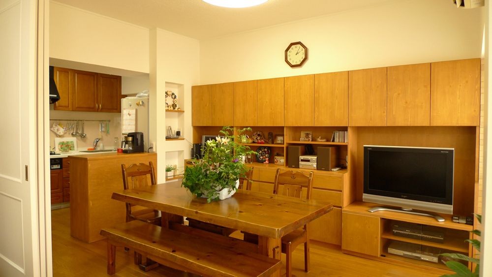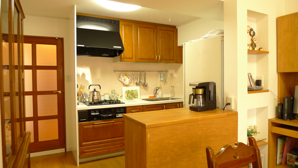 雰囲気よく、キレイに使って頂いていてとてもうれしかった(´∀`)です。 収納する物と収納スペースをH様としっかり打ち合わせし造っていったので、収納物がきちんと納まっていました。 H様の片付け力がすばらしかったんですね(☆゚∀゚)