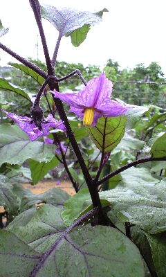 左から、なす・きゅうりは分かったんですが、右だけ分からず父親に聞いたところ、アピオスというイモの花でした