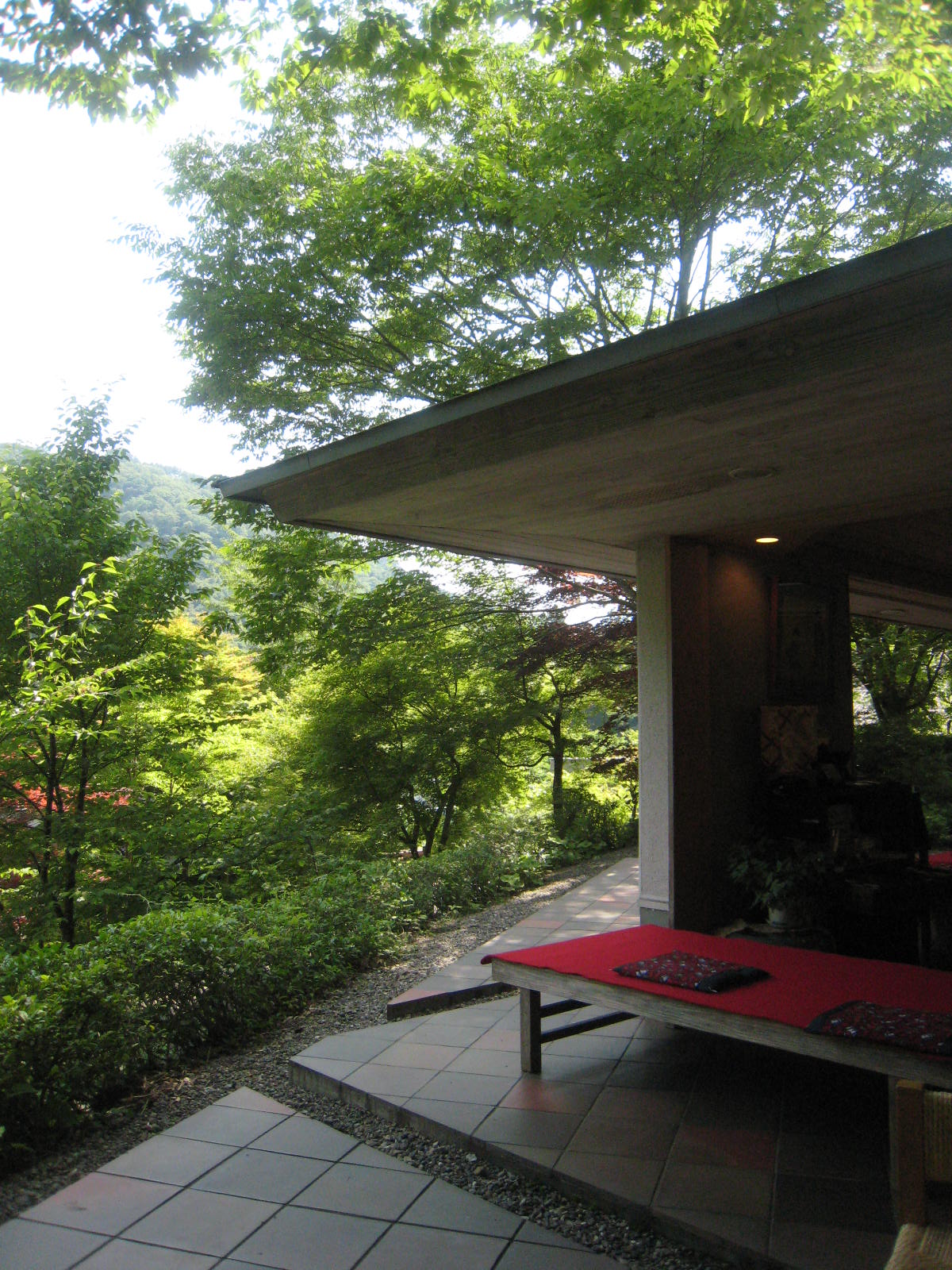 緑の中にあるお茶屋さんは、一服するのに最適。冷たいぜんざいを頼もうとしたら、「温かいのしかありません・・」と衝撃の一言。