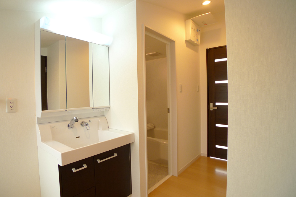 前は一部屋の収納部屋としてを使用していた空間に、間仕切りを造り、水廻り全てを設置して、生活空間にしました。 限られた広さでしたが、天井の勾配をそのまま活かした結果、思っていた以上に部屋が広く感じられました