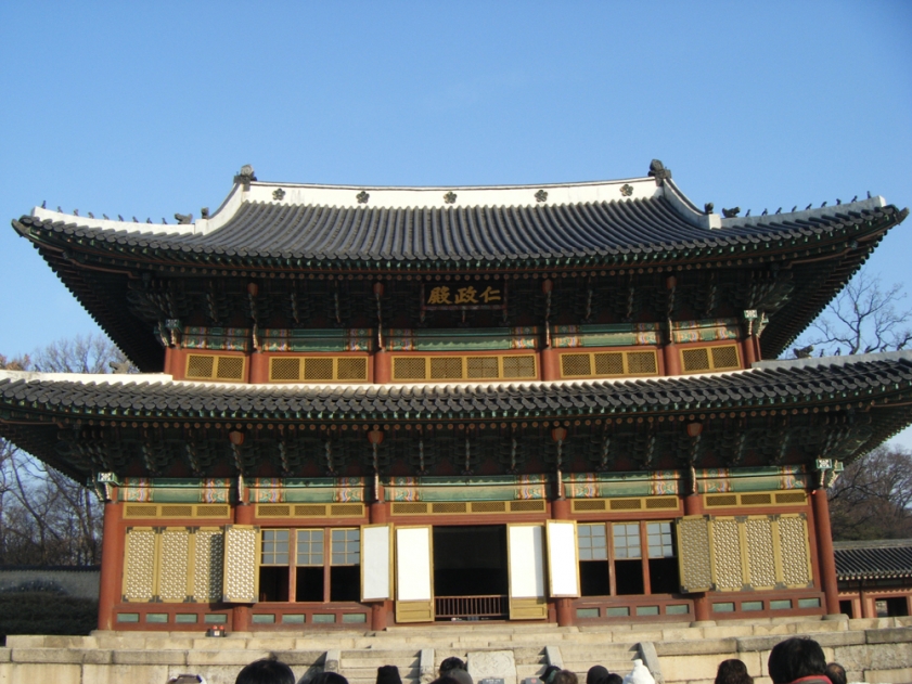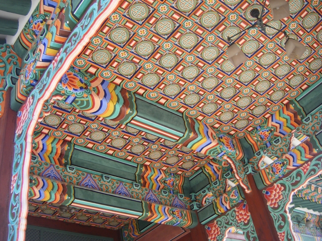 中央の写真は仁政殿といって、正殿として国家的儀式を行っていた場所。 軒裏(屋根の裏側)は、どの建物も鮮やかな柄が施されていました。