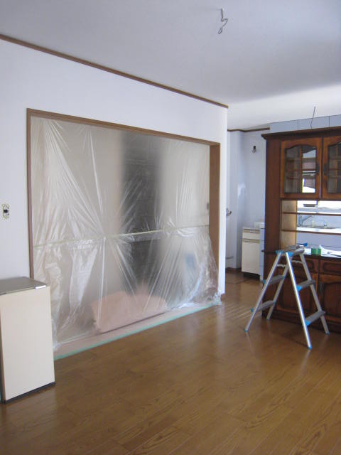 2枚の引き戸を、将来の生活を考慮して3枚引き戸に変更予定(写真右)。あと数日で完成予定です。