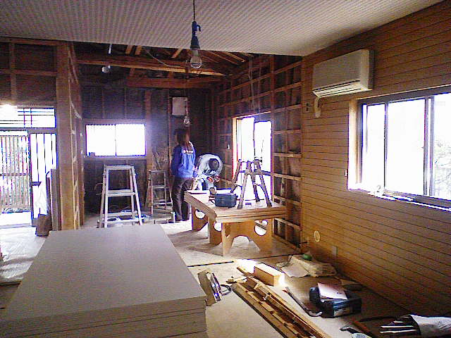 ↑昨日から工事が始まったのが、H様邸です。木をふんだんに使った温かい雰囲気のお部屋をご要望頂きました。無垢のフローリングや建具、奥さん憧れの腰板などを採用しました。