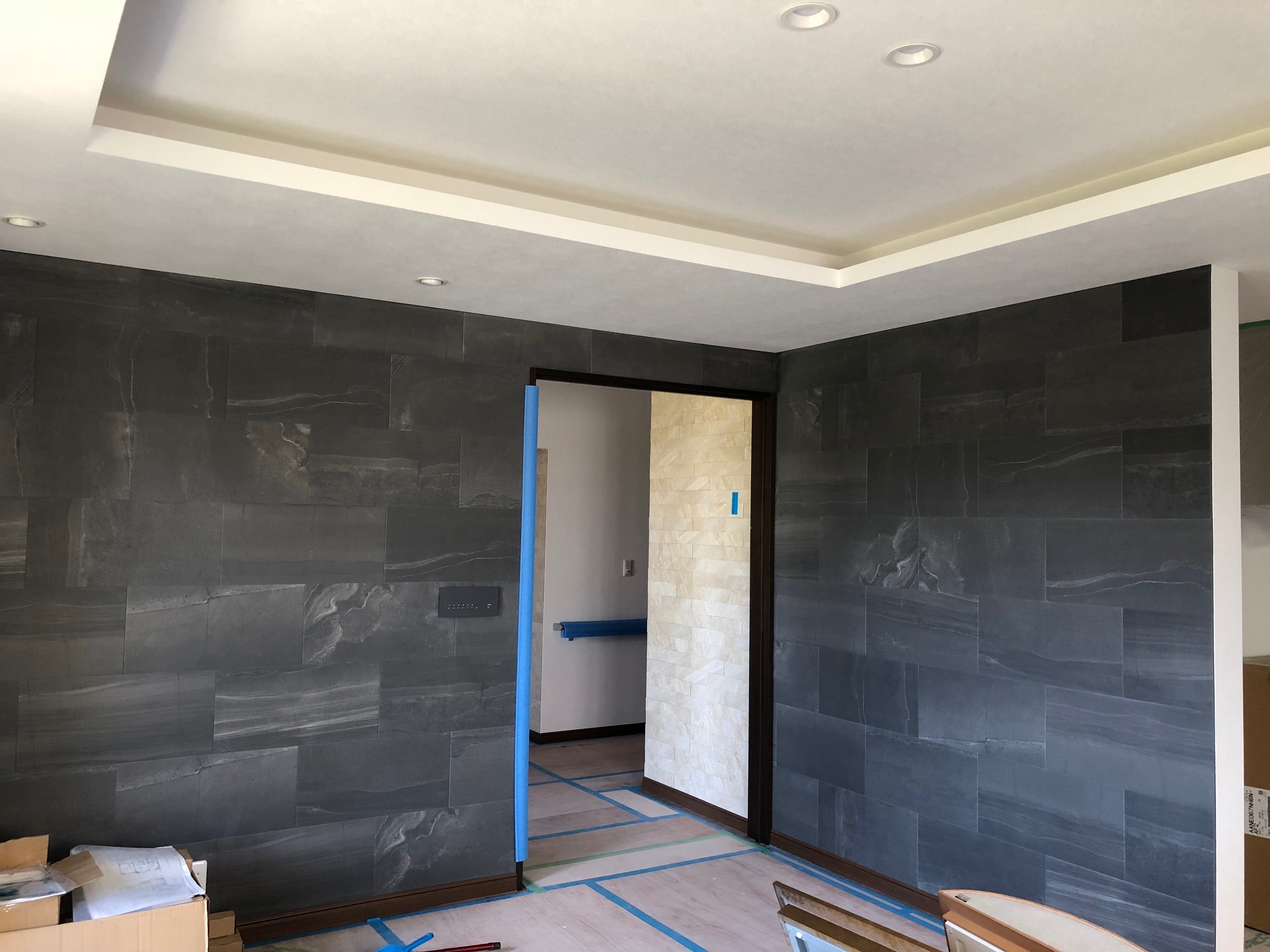 建築化照明やエコカラットを施しました。ダーク系をベースにしたのでとても落ち着いた空間になると思います。