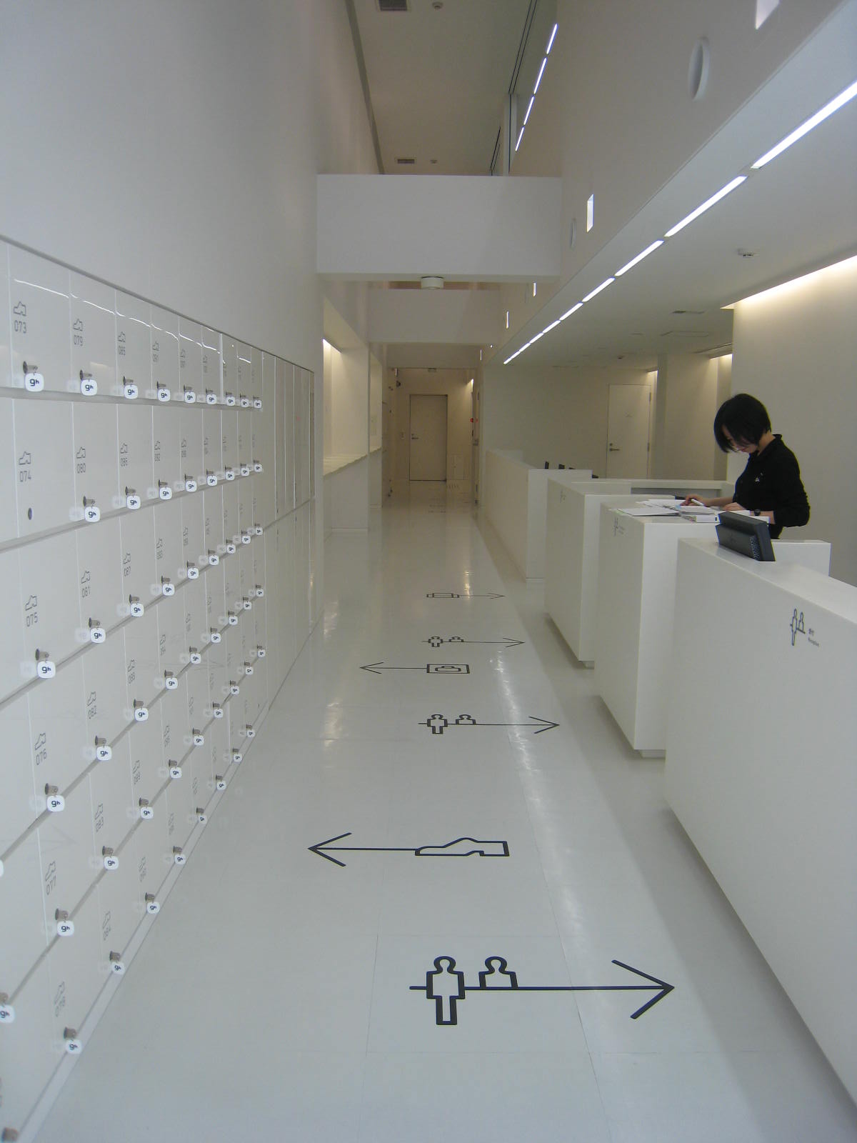 エントランスを入ると明るく開放感のあるレセプションとロッカー。随所にサインがあり、何をするところなのか分かるようになっています。