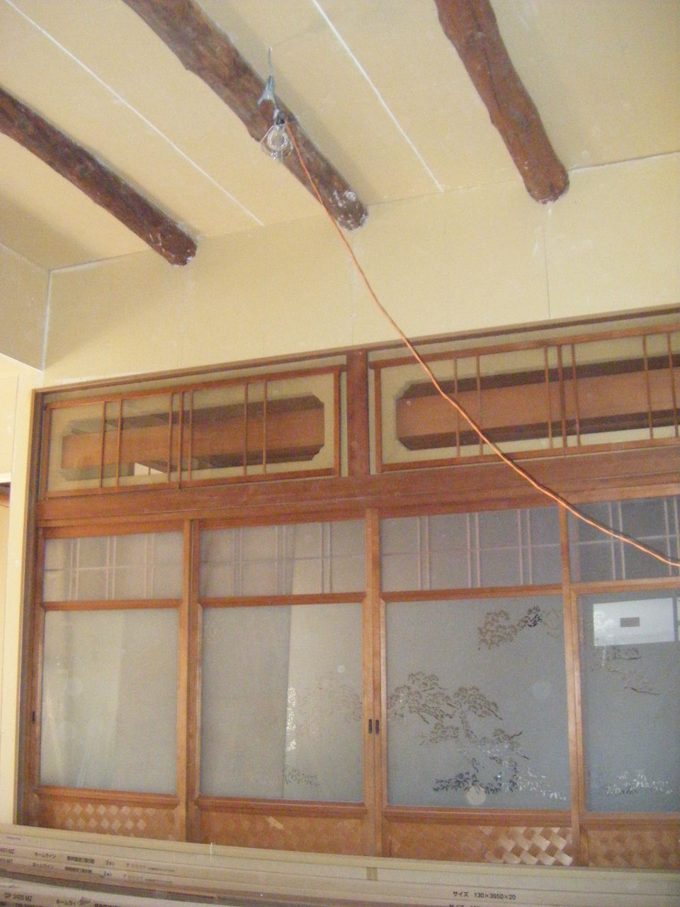 室内の状況はT様が残されたいとご希望されていた、和室の建具といい感じに合う梁がこんな感じになっています。1Fで2Fにも部屋があるのに、天井の高さが高く開放感があります
