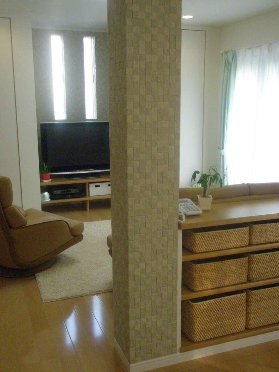 柱に沿わせるように、造作家具を設けました。