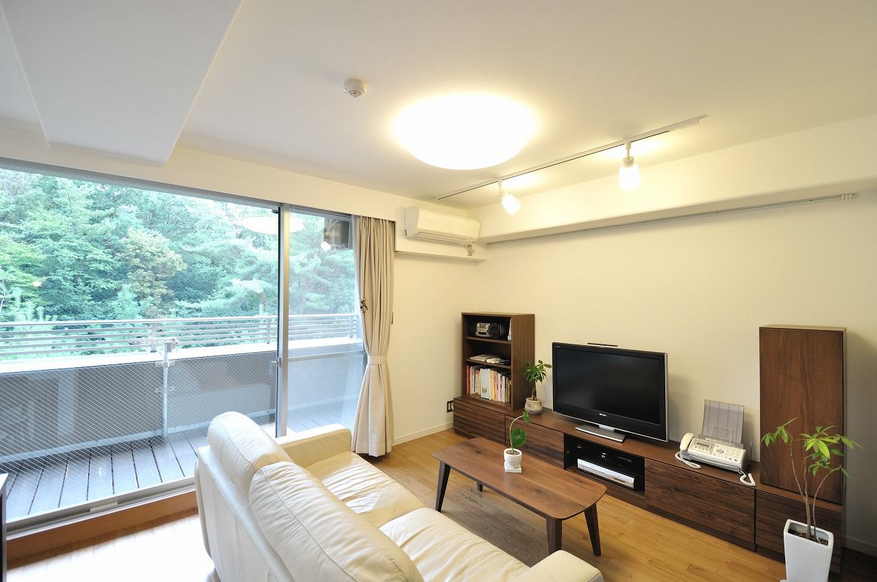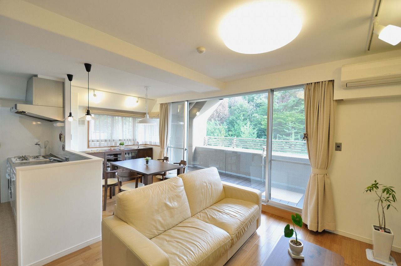 緑いっぱいの抜群のロケーションと、K様こだわりの家具が映える、明るいLDKが生まれました。