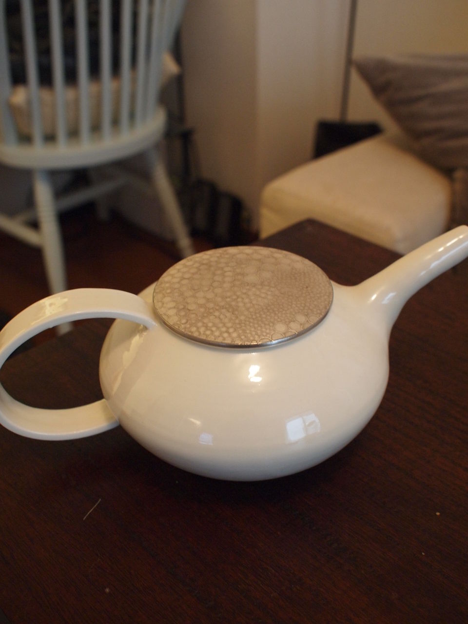 一目惚れしたティーポット、買ってしまいました・・・。フタがマットなシルバーで、細かい模様が入っていて・・・ステキなんです!