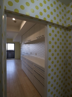 先日リフォームさせていただいたお家で、可愛い色柄のクロス(壁紙)を使いましたのでご紹介します。