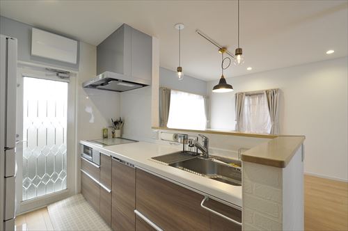 キッチンは位置は変わっていませんが、吊戸を撤去し、明るく見通しのよいキッチンとなりました。