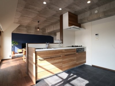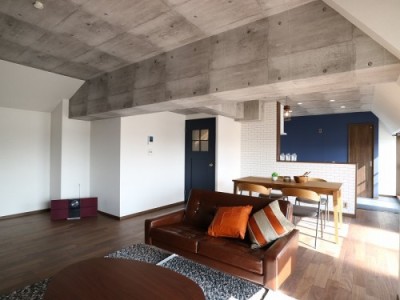 コンクリート調クロスはY様念願の柄。最上階である為コンクリート現しが出来ないのでクロスで仕上げました。