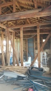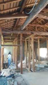 解体直後、屋根裏に隠れていた丸太梁が露わになり、趣があってとても素敵でした。