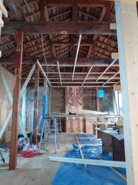 残念ながら、断熱効果・清掃面などを考慮し、梁は新しい天井下地の中にバイバイです。
