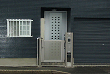 写真のお宅は、建物の形にあわせてグッとシャープな印象にしました。ダークグレーの人気のシルバー色の玄関ドアがダークグレーの外壁でより引き立ちました。